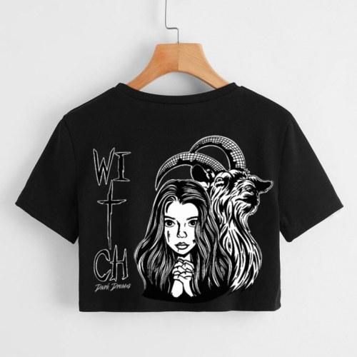 Crop Top Colección Witch estampado en serigrafía sobre remera negra de algodón