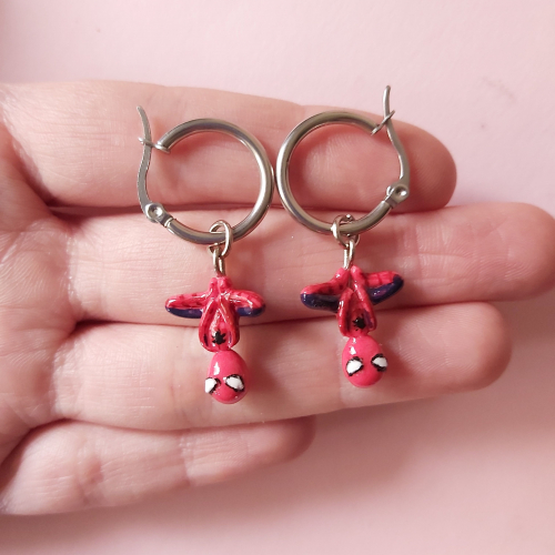 Aritos de Spiderman y de los dijes que más te gusten. Todos los pasantes son de acero quirúrgico