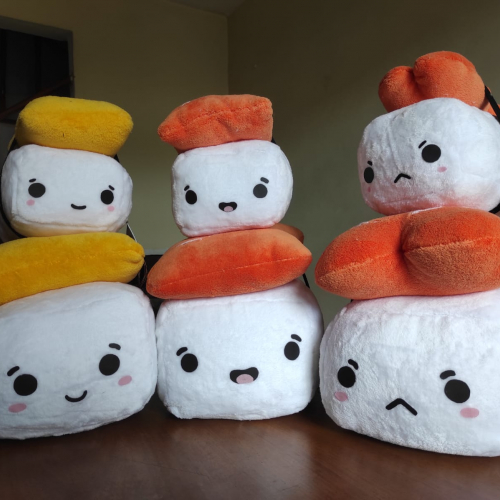 Peluche con forma de Nigiri, con dos tamaños, el pequeño de 20cm de largo, y grande de 30cm de largo, con la posibilidad de separa el arroz del salmón con un cinturón con velcro ~