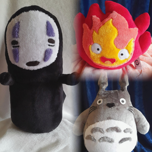 Peluches de los personajes del estudio Ghibli (Totoro, Calcifer, No Face) de 30-35cm de alto y 26-37cm de ancho, de pura tela suavecita para abrazar ~