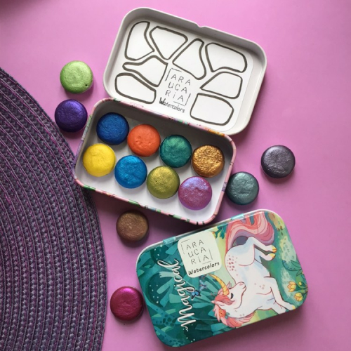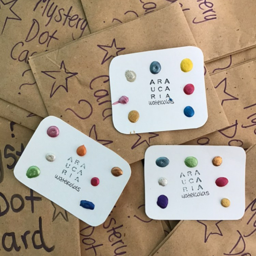 Tarjetas en hoja de acuarela con gotas secas de acuarelas colores sorpresa.
