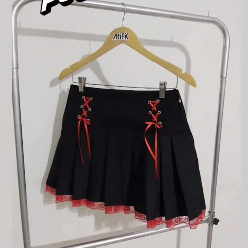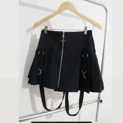 Pollera tableada, con cierre al frente. Detalles de hebillas que se pueden desmontar. Talles standar y a medida.