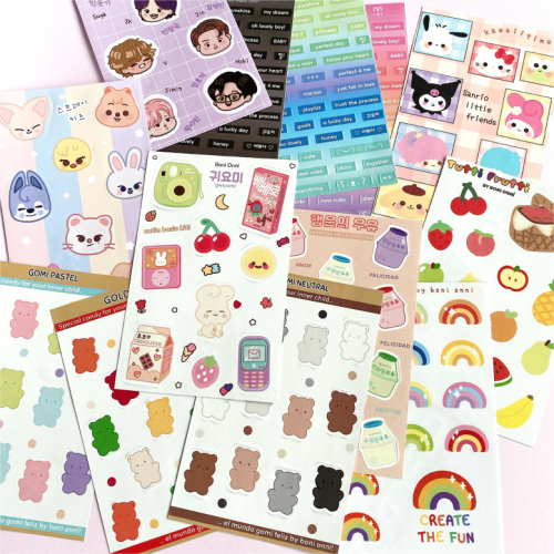 Planchitas de stickers, calcos individuales, sets, libretas y más productos para decorar por la vida o hacer cute journaling. Todos diseños propios by Boni Onní.
