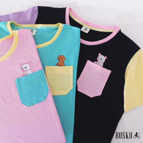 Remeras con bordados Gato Sireno y Daschund , en varios colores combinados- Talles del xs al 3xl