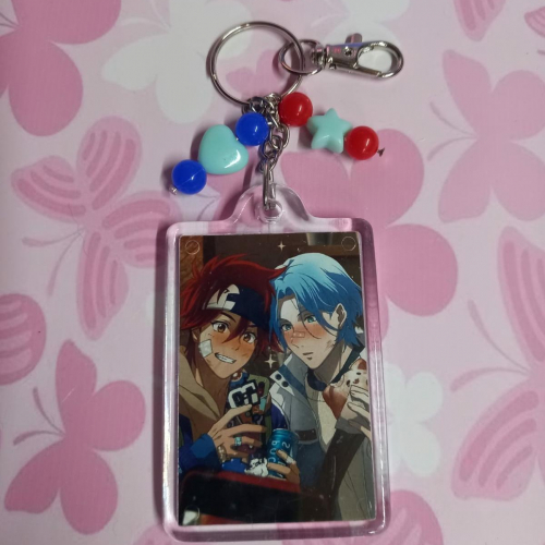 Llavero rectangular con deco en bijou, también de personajes de anime/juegos
