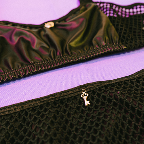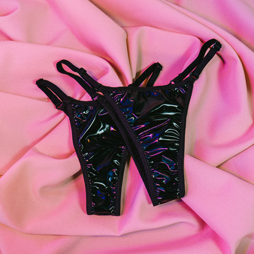 Fabricado en cuero ecológico y red negra. Corpiño "top", el más cómodo y práctico! La vedettina, tiro alto, cola less. Moldería retro!