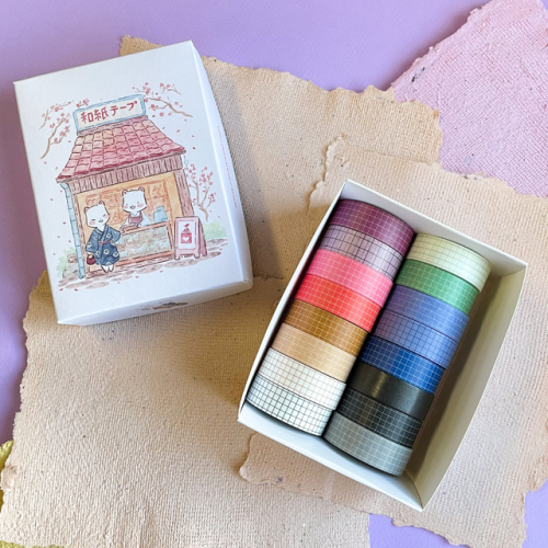 Cintas decorativas de papel de arroz. Son autoadhesivas. Se cortan con la mano o con tijera. Se pueden usar sobre papel, carton, vidrio, madera, plástico y casi cualquier superficie lisa. Son reposicionables y se puede escribir encima.