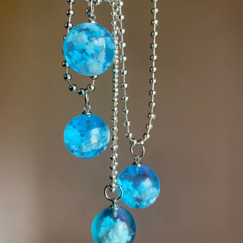 Hecho de resina epoxi duradera y resistente Un hermoso collar para que siempre lleves a esa persona especial ! Su diseño aestetic permite darle ese detalle delicado a tu outfit☁️