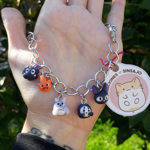 Pulsera con 5 dijes de personajes Ghibli: Susuwatari, Calcifer, Totoro, Kaonashi y Jiji ~