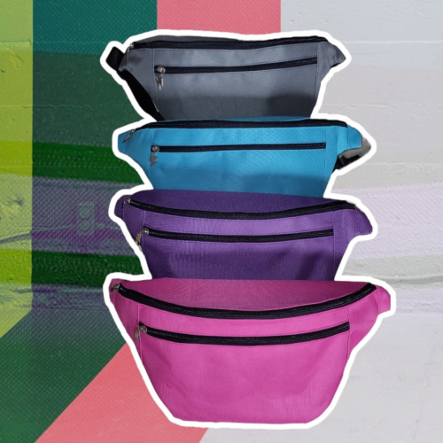 Riñoneras gigantes, para llevar todo lo que necesites. Estampadas o colores lisos. Tienen 2 bolsillos muy amplios, y correas largas para poder usar cruzadas. Miden 45cm de ancho, 20 de alto y 10cm de profundidad