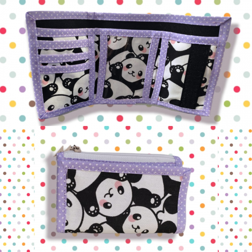 Billeteras con 6 compartimientos para tarjetas, de los cuales uno es transparente. Bolsillo con cierre para las monedas y bolsillo principal para los billetes. Más de 20 estampados diferentes para elegir.