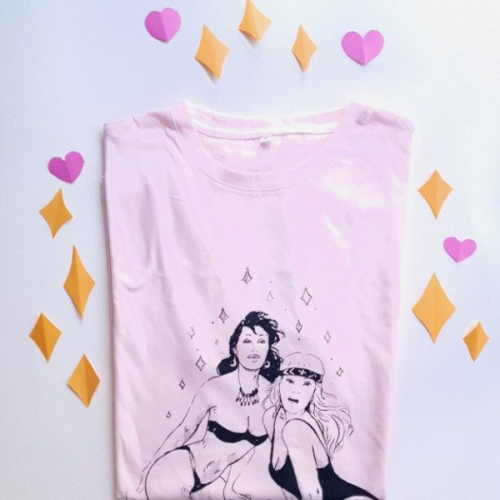 ⚘De algodón ⚘Estampa en serigtafía ⚘Color Rosa ⚘Incluye de regalo 1 set de sticker Divas holografico