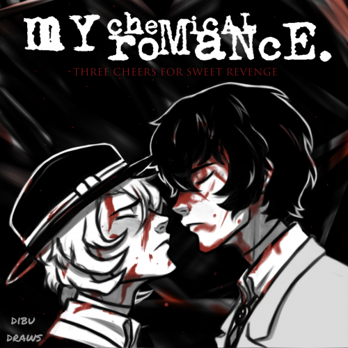 disponible en sticker y print. Album de My Chemical romance "Three cheers for sweet revenge" pero con los personajes de Dazai y Chuuya de Bungo Stray dogs.