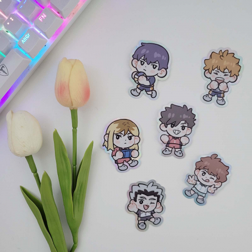 Stickers de vinilo holográfico de diversos personajes de manga y anime.