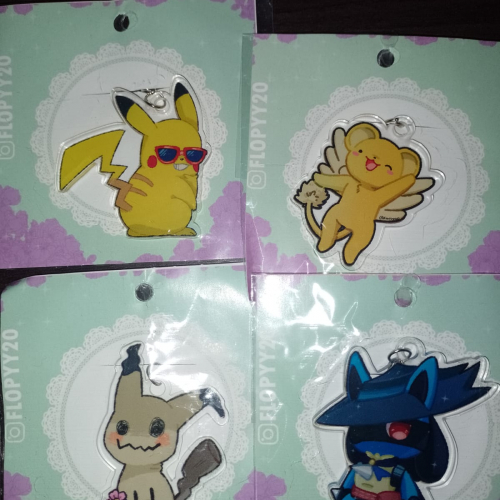 Diversos diseños de llaveros de acrilicos, con ilustracione realizadas por mi. Abarcando Pokémon, Sakura Card captor, y diversas series de anime.