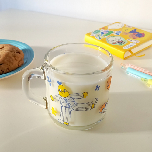 tazas de vidrio estampadas con ilustracion de las bananas en pijamas!