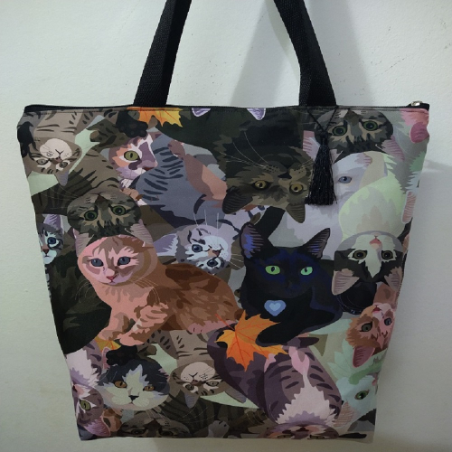 Tote Bag con cierre forrada en su interior con tela impermeable, tiene bolsillo interno.
