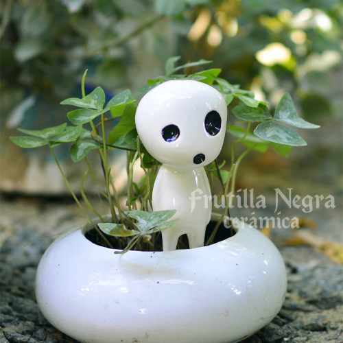 Figura en cerámica de un Kodama, espíritu del bosque de la película La Princesa Mononoke. Para el jardín, las macetas o cualquier lugar con plantas ♡ Altura: 16 cm. Con base plana para apoyo.
