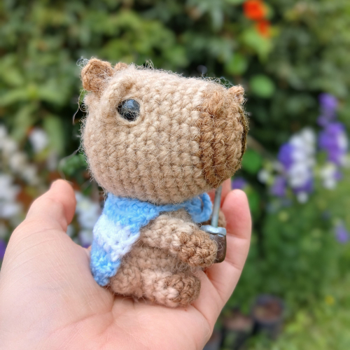 Tierno Capibara bebé tejido en lana Mohair sintetica super suavecita. Con ojos de seguridad La versión con mate, realizado a mano en porcelana fría pintada y laqueada. Tamaño aproximado 9 cm de alto