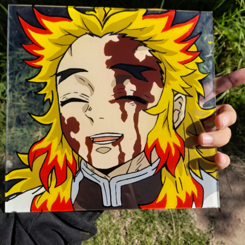 Cuadro pintado a mano de Rengoku de Kimetsu no yaiba
