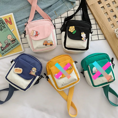 ¡Hermosa bandolera simple, tela impermeable y con 2 pines muy lindos!