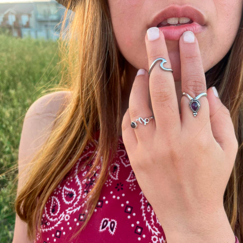 Anillos en acero quirúrgico con piedra natural y baño de plata