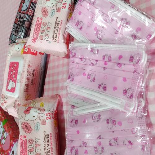 También pueden encontrar varios accesorios de kuromi, My melody y de hello Kitty Peluches, barbijos y stickers