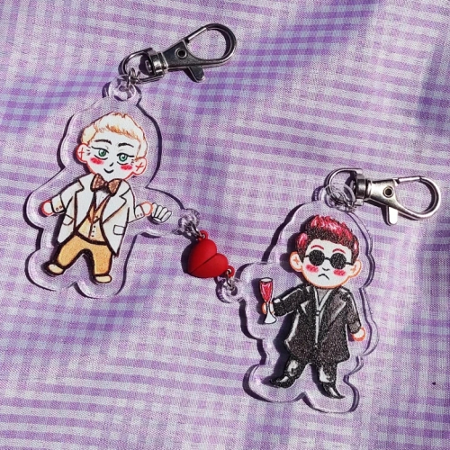 Llaveros de acrílico de distintos modelos decorado con mostacillas a juego. Ilustraciones propias.