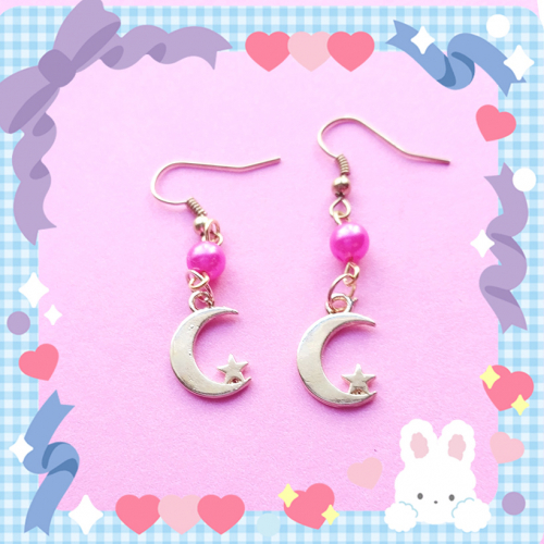 Aros de lunas metálicas con detalle de perlita fucsia