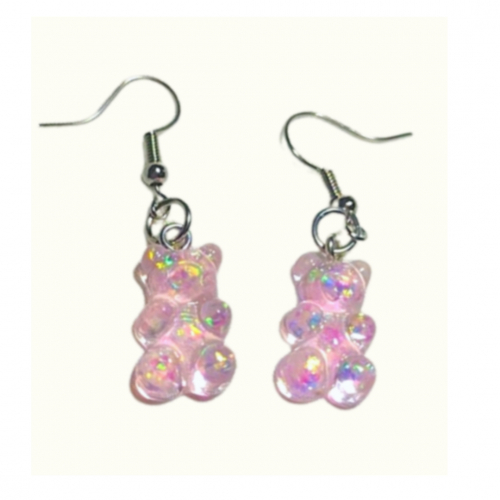 Aros plateados de osito con brillos rosa pastel de níquel.