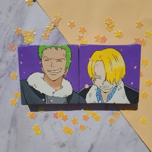 Zoro y Sanji de One Piece en acrílico sobre bastidor entelado de 10x10cm Podés llevarte un basti o los dos a precio amigui