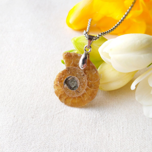 Fósil de amonite en dije, incluye cadena de acero quirúrgico de regalo