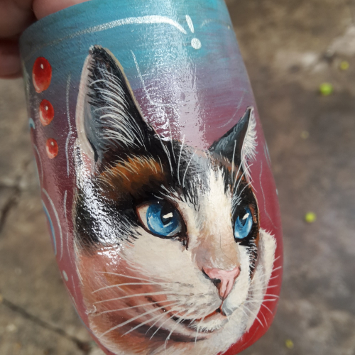 Mates de algarrobo pintado a mano con el retrato de tu perro,gato ...con fileteado y su nombre , barnizado. Hacemos trabajos especiales ♡
