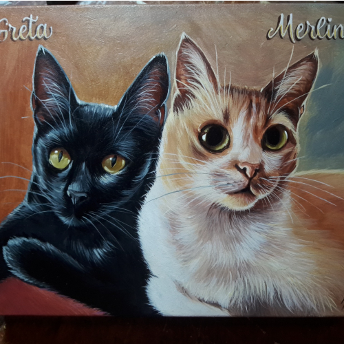 Cuadros en bastidor de madera de fabricacion propia, con el retrato/s de tu/s mascotas ,desde foto y por separado, armamos la composicion . Consulta sobre medidas y nro de retratos ♡`
