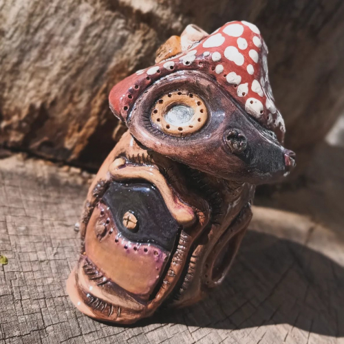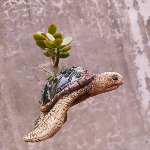 Tortuga biomecánica flotante tomada por la naturaleza, especie autóctona típica perteneciente al océano aéreo " Maceta de ceramica colgante modelada y pintada a mano + Plantines de mi jardin mágico de cactus y suculentas