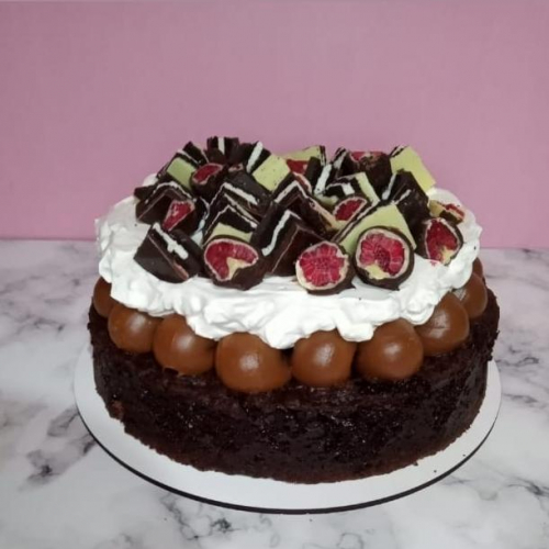 Torta brownie con dulce de leche, crema chantilly, franuis y oreos bañadas .