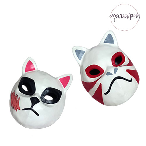 Máscaras animé, hechas artesanalmente, pintadas con acrílico