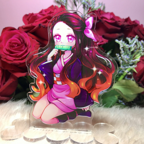 Stand/Adorno acrilico de Nezuko. Varios modeols disponibles. Impresos en doble faz, miden 7x10 cm aproximadamente.