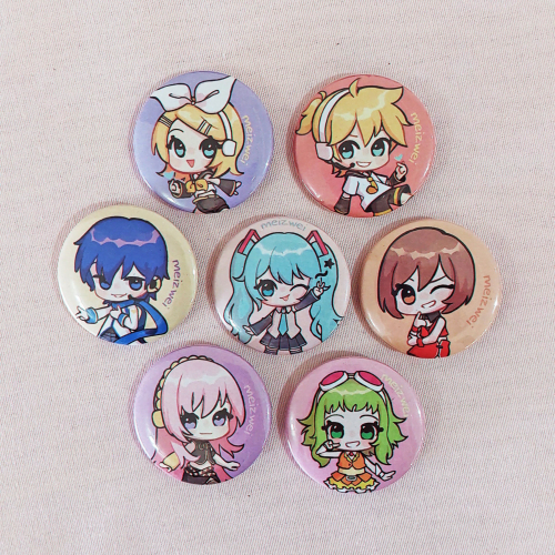 Pins de los 7 personajes más famosos de Vocaloid: Miku, Rin, Len, Luka, Kaito, Meiko y Gumi (en un futuro, de a poco, se agregaran más...) Se venden por separado