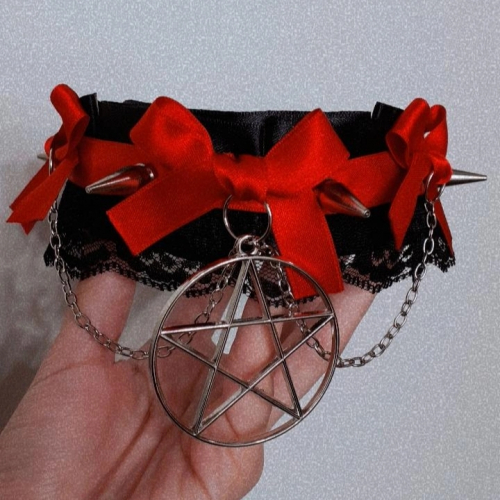 Choker dijes varios (cruz) + tachas