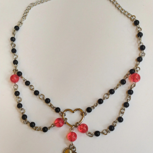 Remeron negro con estampado en blanco , bandolera con dijes hecha a mano .