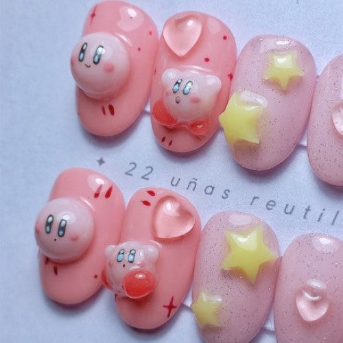 22 uñas intervenidas, con 20 talles diferentes, del personaje mas rosado, redondo y cute que existe ✨ Todos los Kirbys son diferentes! Prestá atención porque podés encontrar Kirbys especiales