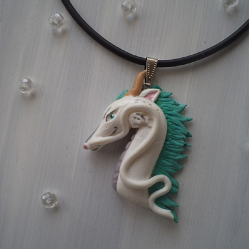 Diseño de Haku hecho a mano en porcelana fría, de la película "El viaje de Chihiro".