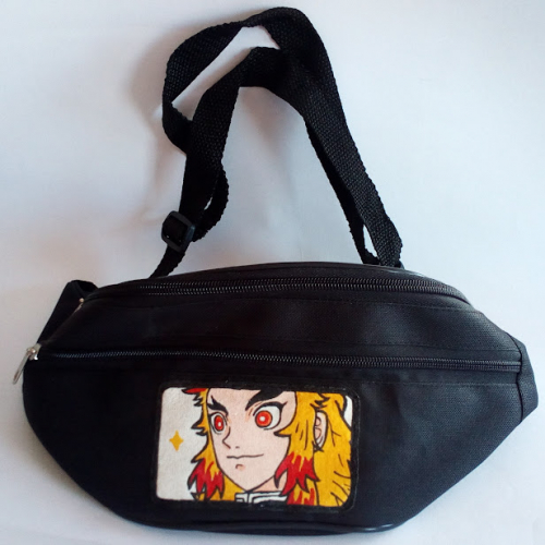 Riñonera tamaño grande, con aplique pintado a mano de Kyojuro Rengoku ("Kimetsu no Yaiba")