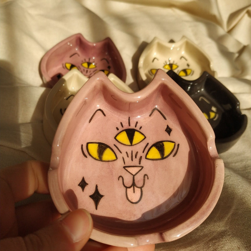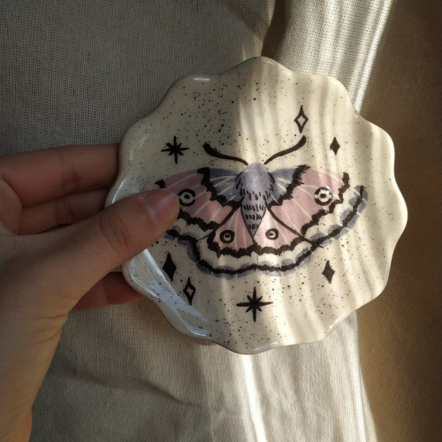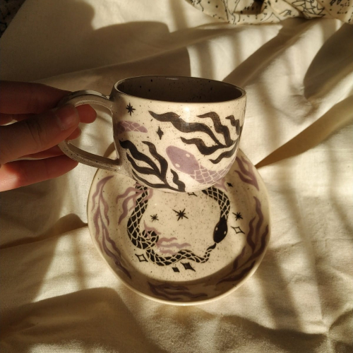 Juego de taza y plato de cerámica hecho y pintado a mano.