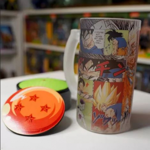 Posavasos de las 7 esferas con holder del radar del dragon y chop de vidrio esmerilado