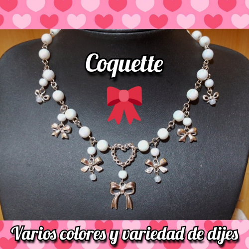 Collar de perlas y dijes con la temática Coquette. También hay más motivos de dijes y variedad de colores!
