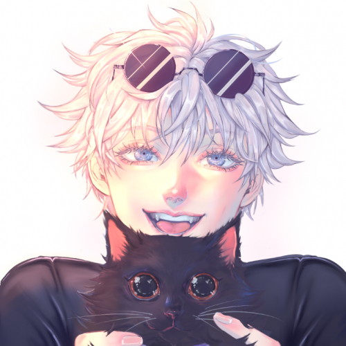 Es gojo con un gatito con la plaquita de geto