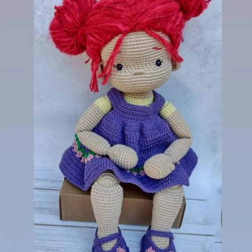 Esta muñeca articulada mide 45cm aprox. Esta hecha con hilo de algodón fino .