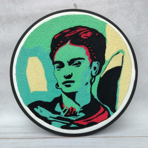 Bordado con la técnica punch needle realizado con hilo de algodón fino y marco de fibro fácil tiene 30cm de diámetro aprox.